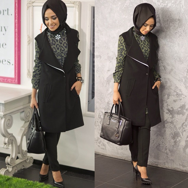 Untuk sepupuku yang tidak berhijab, dia bisa menjadi ‘sampel’ untuk produk yang dikhususkan bagi mereka yang tidak berhijab. Namun tetap dalam tema Turkish Style. Aku sudah lama sekali memperhatikan selera fashion para wanita Turki. Meski mereka tidak berhijab, mereka punya ciri khas. Salah satu style wanita tidak berhijab di sana adalah kemeja yang dipadukan rok lebar, atau celana ketat dengan coat hingga di bawah lutut. Mereka terlihat manis dengan style seperti itu.